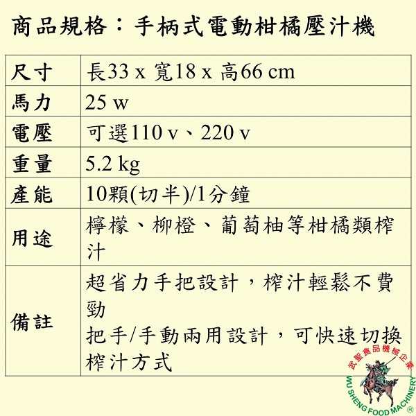 用途:檸檬、柳橙、葡萄柚等柑橘類榨汁