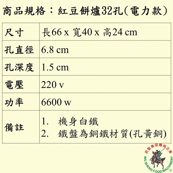 紅豆餅爐32孔(電力款)