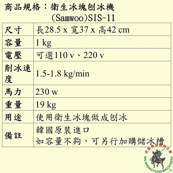 衛生冰塊刨冰機(Samwoo)SIS-11