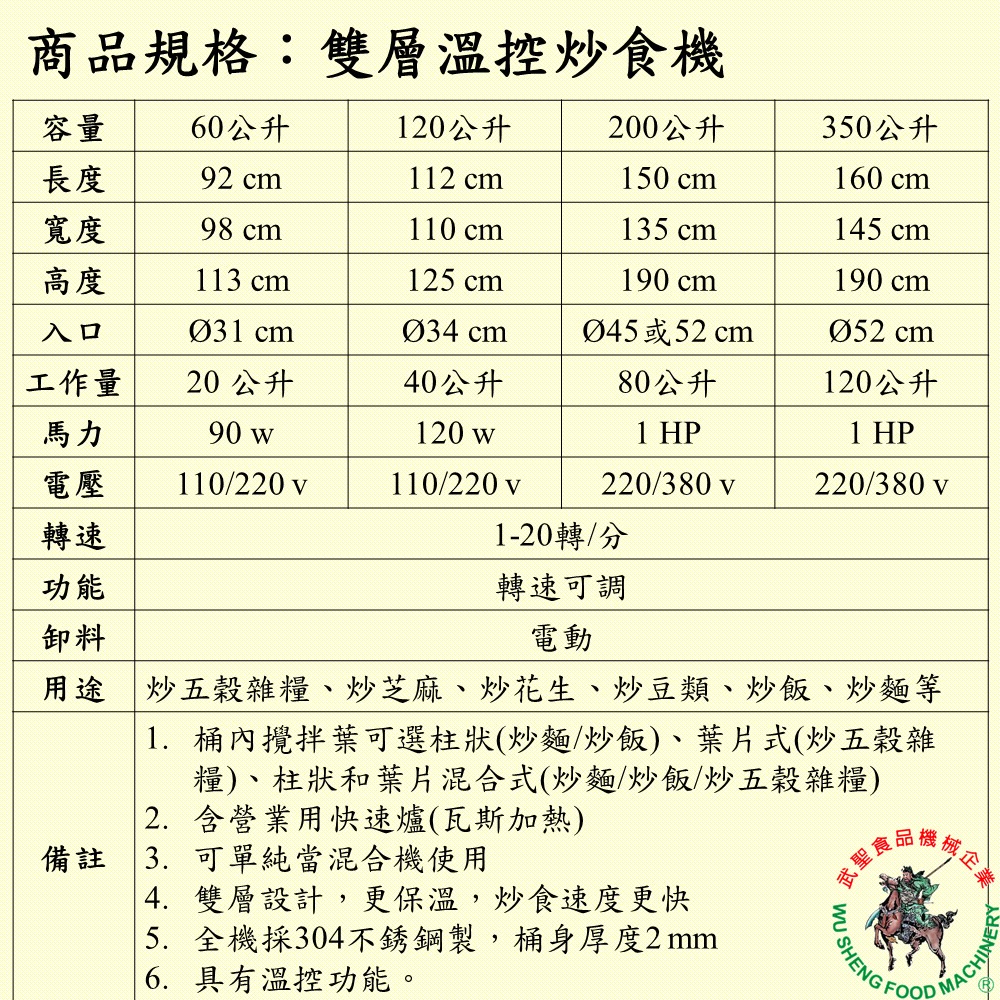 賣場有不同規格炒食機可參考
